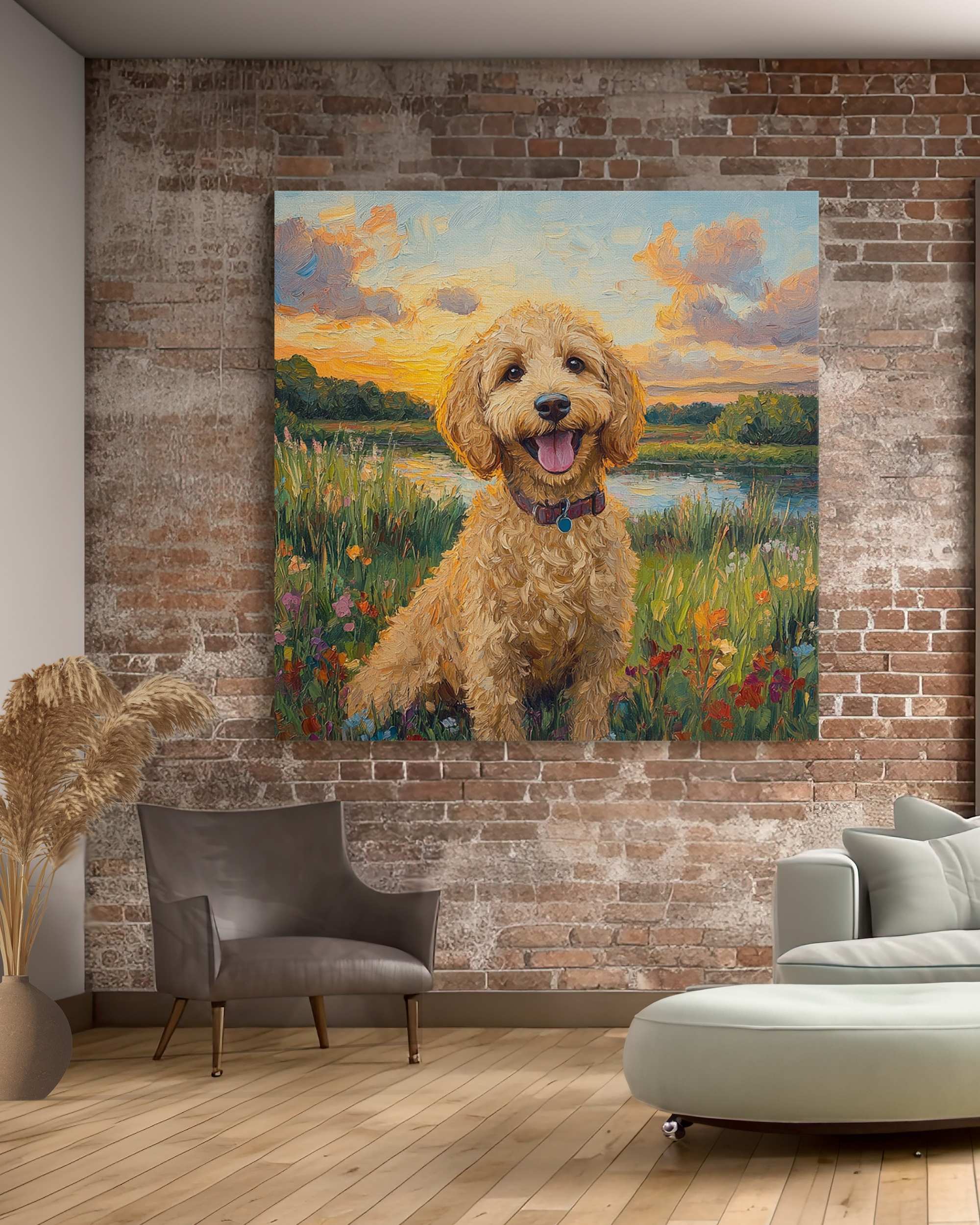 Inspired by my Goldendoodle Winston's endless joy and quirky charm, we create custom portraits that capture the heart of every Doodle. Scroll through these moments to see the love that fuels our art—zoomies, cuddles, and all the happiness in between.